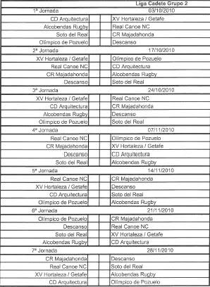 Calendario Cadetes