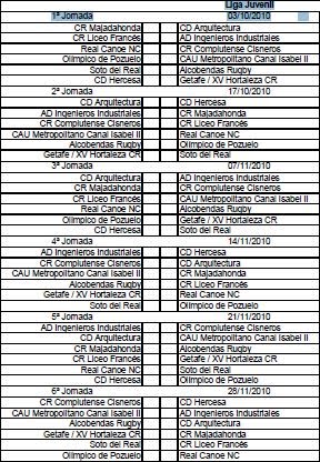 Calendario Juveniles