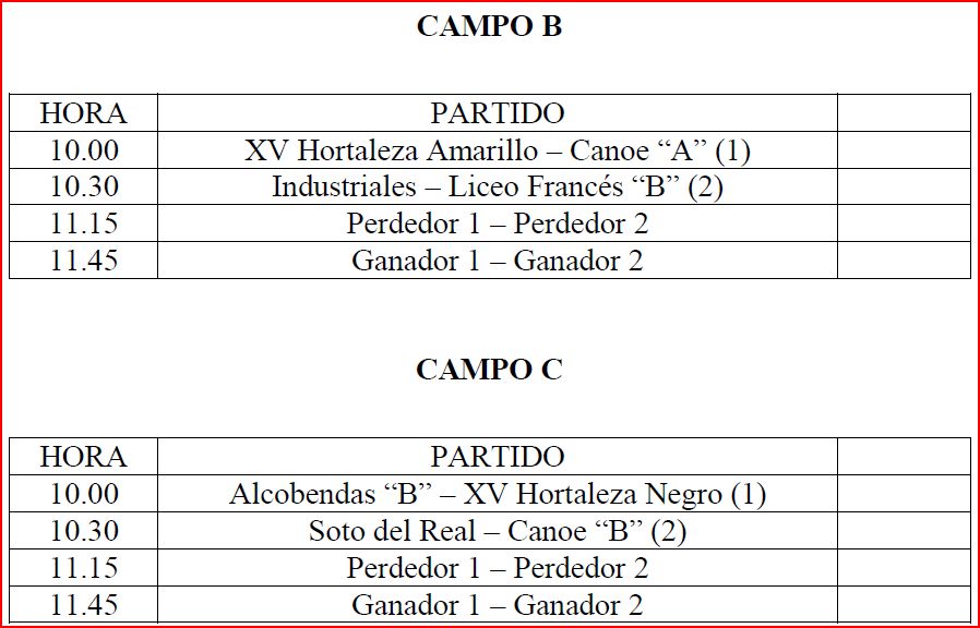 Programación Sábado Día 16 de Octubre Benjamines