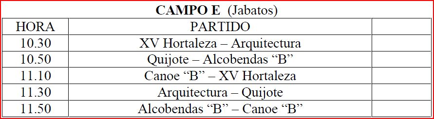 Programación Sábado Día 16 de Octubre Jabatos y Prebenjamines