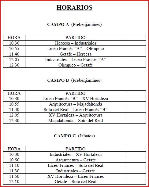 Programación Sábado día 6 de Noviembre Prebenjamines, Jabatos y Linces